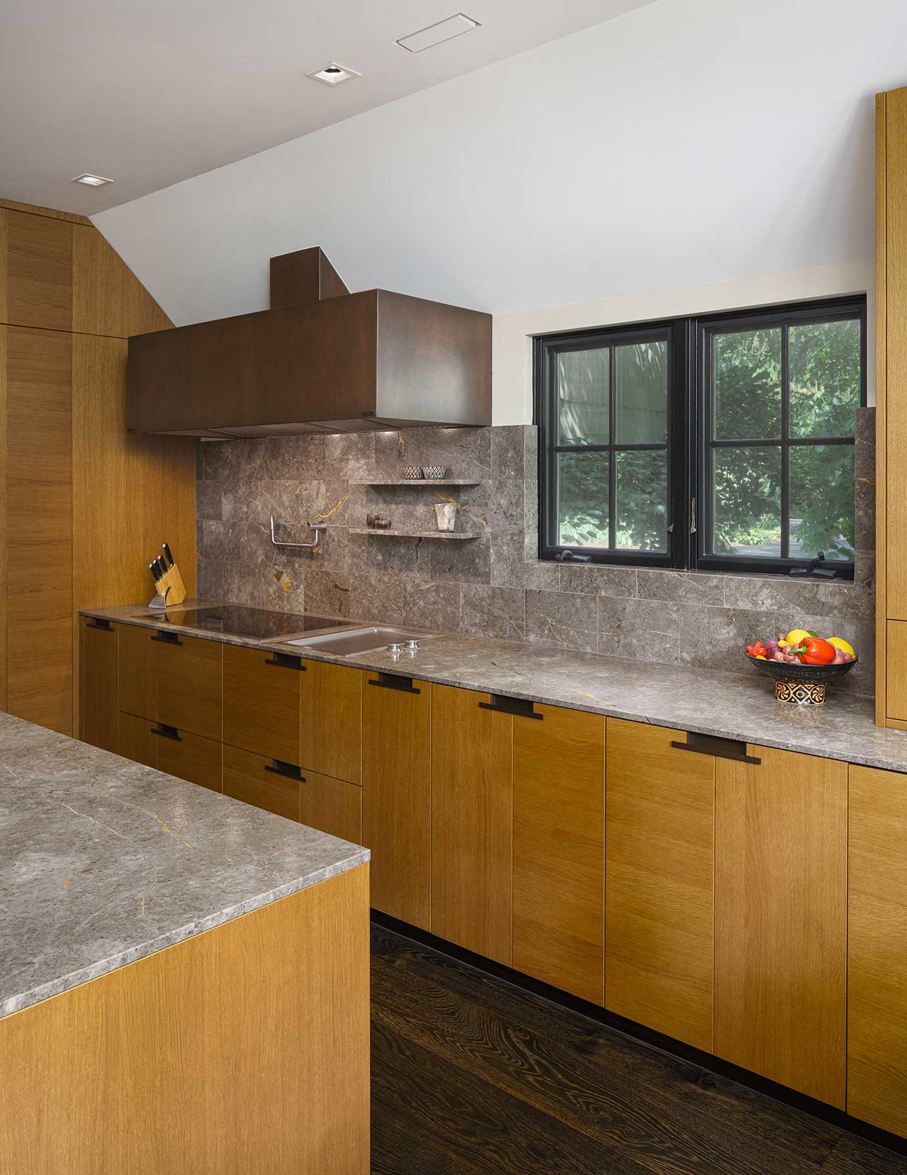 In a region celebrated for its deep artistic heritage and cultural influence, Cesar Italy’s Intarsio collection brings that legacy indoors, setting a refined tone for the entire project. The warm Rovere Mediterraneo wood pairs beautifully with the luxurious Grigio Billiemi marble, creating a centerpiece that is both striking and timeless.