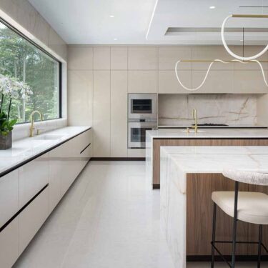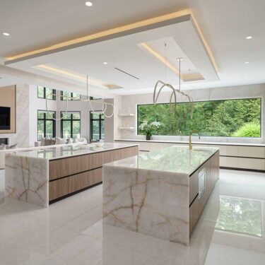 Located in one of Monmouth County’s most affluent South Jersey towns, this Modiani Kitchens project was designed in collaboration with the homeowners and their architects to create a glamorous, oversized kitchen as the centerpiece of a large open-concept home.